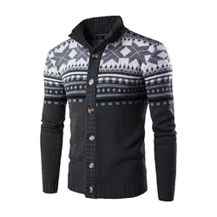 Men’s Winter Cardigan Wool Knit Sweater Coat Dark Grey