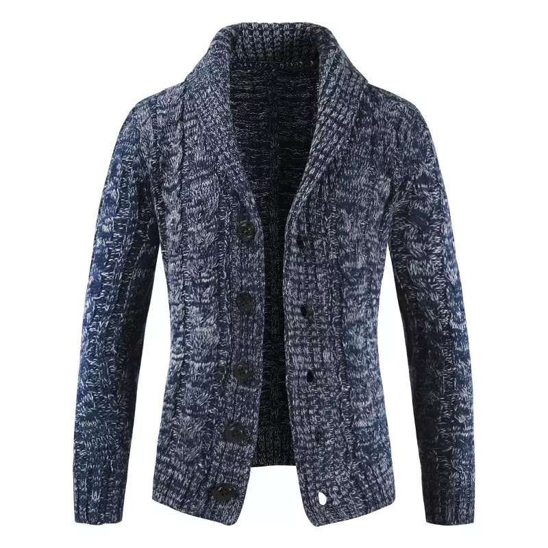 Men’s Winter Cardigan Wool Knit Sweater Coat Navy